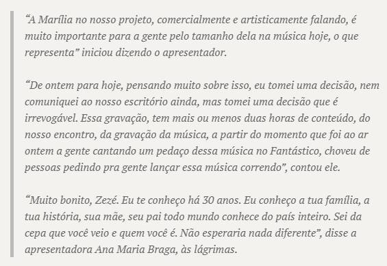 Sobretudo, dias antes, o cantor virou notícia após falar sobre a eterna cantora Marília Mendonça: